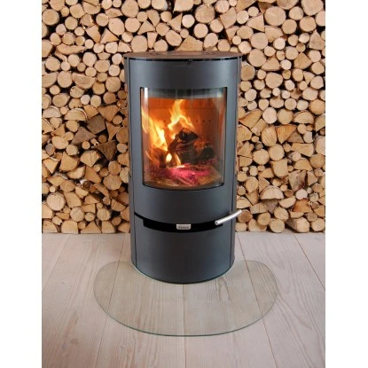 Die Aduro Glasplatte Halbmond ist eine stillvolle und minimalistische Bodenplatte. Die Glasplatte wird vor dem Ofen gelegt und hebt die runde Form des Ofens hervor.