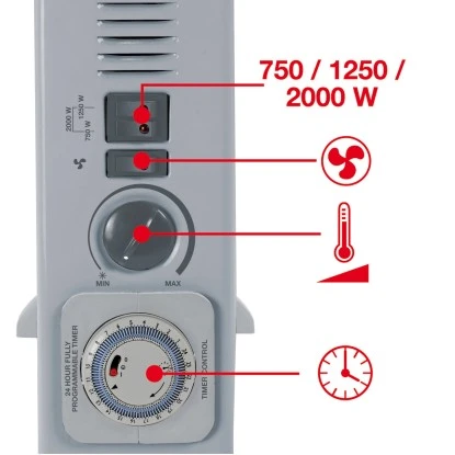Der Konvektor CH 2000/1 TT ist perfekt als Übergangsheizung oder Vollheizung für kleinere bis mittlere Räume geeignet. Mit den drei über zwei Schalter bedienbaren Heizstufen (750/1250/2000 W) sowie dem stufenlos einstellbaren Thermostatregler kann das Gerät bequem auf die gewünschte Raumtemperatur ausgerichtet werden.