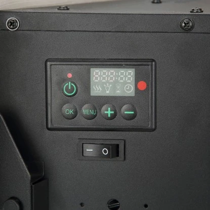 Für den El Fuego Elektro-Kamin müssen Sie weder Brennholz hacken, noch ein Feuer entzünden. Schalten Sie den elektrischen Kaminofen einfach per Fernbedienung ein und schon beginnt das Feuer zu lodern. Die LED-Beleuchtung erzeugt eine perfekte Illusion von glimmender Glut und lodernden Flammen. Der Kamin lässt sich entweder direkt am Ofen selbst oder über die Fernbedienung einstellen und verfügt über zwei verschiedene Leistungsstufen. An kalten Tagen lässt sich zudem die zusätzlich eingebaute Heizung einschalten, die für einen angenehm warmen Luftstrom sorgt. Auch ein dafür ausgelegter Überhitzungsschutz lässt sich direkt über die Fernbedienung ein- und ausstellen.