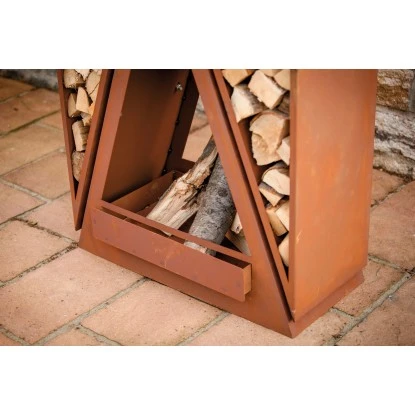Der Kaminofen Twin aus gerosteten Stahlblech ist sehr robust und ist ein wahres Highlight für jeden Garten oder Terrasse. Der Kaminofen hat zwei Aufbewahrungsfächern für Holz und eine eingearbeitete Schiebeplatte, die das Entleeren der Asche vereinfacht.Produktdetails: