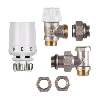 Geräuscharmes Thermostatventil in Eckausführung mit Standardeinsatz Type BB mit Breitband-Kegel für die Verwendung im Vorlauf. Geeignet für alle Homexpert und Honeywell Thermostatregler und elektrische Antriebe.