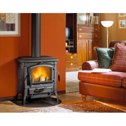 Dank der Sekundärbelüftung (Scheibenspülung) bleibt die Scheibe lange sauber und Sie können das Flammenspiel ungetrübt genießen. Hervorzuheben ist der breite Feuerraum mit der praktischen Seitentür (rechts) für extra lange Holzscheite.