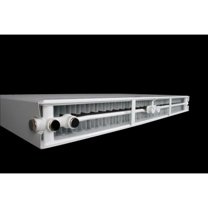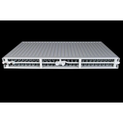 Nicht im Lieferumfang enthaltem sind Anschluss- und Regelungszubehör. Die Montage des Ventileinsatz ist nur auf der rechten Frontseite möglich. Der Heizkörper hat eine Bauhöhe von 600mm, eine Baulänge von 1200mm und eine Bautiefe von 105mm. Die Wattleistung bei Leistung 75/65/20°C beträgt 1984 Watt, bei 55/45/20°C 1026 Watt.