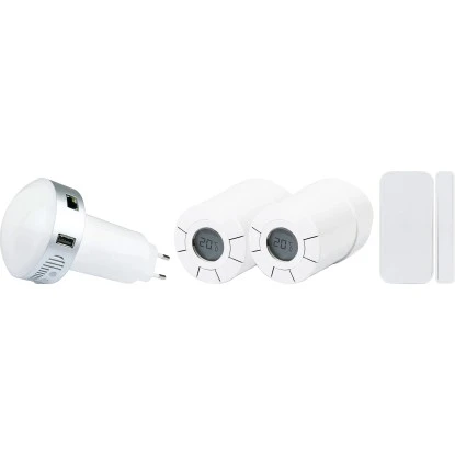 Die Regelung auf eine vorgegebene Temperatur erfolgt über das Stellventil zur Steuerung von Wandheizkörpern und wird direkt am Gerät über eine LCD-Anzeige dargestellt. Offene oder geschlossene Fenster und Türen erkennt der Sensor zuverlässig, was für ein sicheres Gefühl sorgt. Sie müssen sich keine Gedanken mehr machen, ob alle Türen und Fenster geschlossen sind oder Sie die Heizung ausgeschaltet haben. Weitere HOME4YOU-Komponenten können über den Gateway problemlos eingebunden werden. Einer Erweiterung des Systems steht also nichts im Wege! Im Lieferumfang enthalten sind: Gateway, Netzwerkkabel (2 m), 2x Heizkörperthermostat jeweils mit Adapterring für RA Anschlüsse, Adapterring für M30 Anschlüsse, 2x Batterie (AA Mignon) und Inbusschlüssel, 1x Tür- und Fenstersensor mit Klebepads, 2x Batterie 1,5 V LR03 (AAA), Bedienungsanleitungen