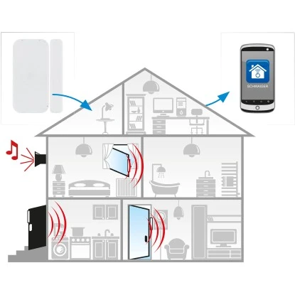 Das Starterset ist ein Paket zur effektiven Sicherung von Innenräumen. Sowohl Temperatureinstellungen als auch die Überwachung von Fenstern oder Türen können mit einfachen Handgriffen im Blick behalten und gesteuert werden. Der Schwaiger Gateway gibt alle Statusinformationen der Sensoren über die dazugehörige App bekannt.